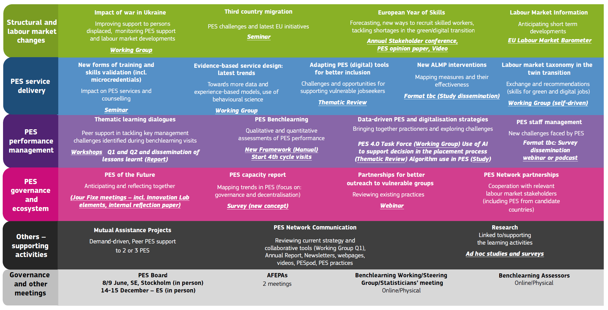 Plan pracy jest elastycznym dokumentem, który można dostosować do aktualnych priorytetów Zarządu lub szybko zmieniającej się sytuacji na europejskim rynek pracy. Działania skupione są w czterech osiach tematycznych:
